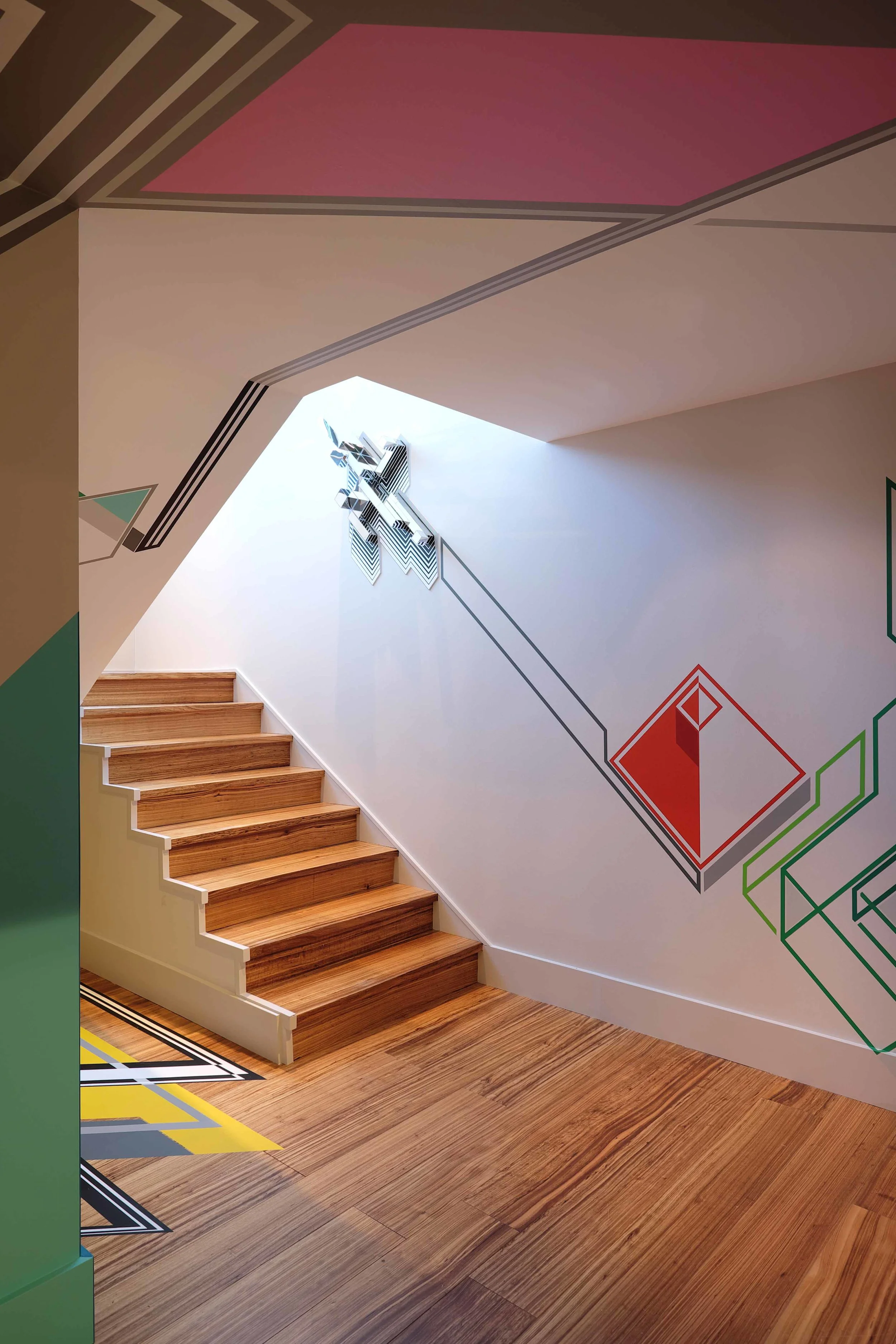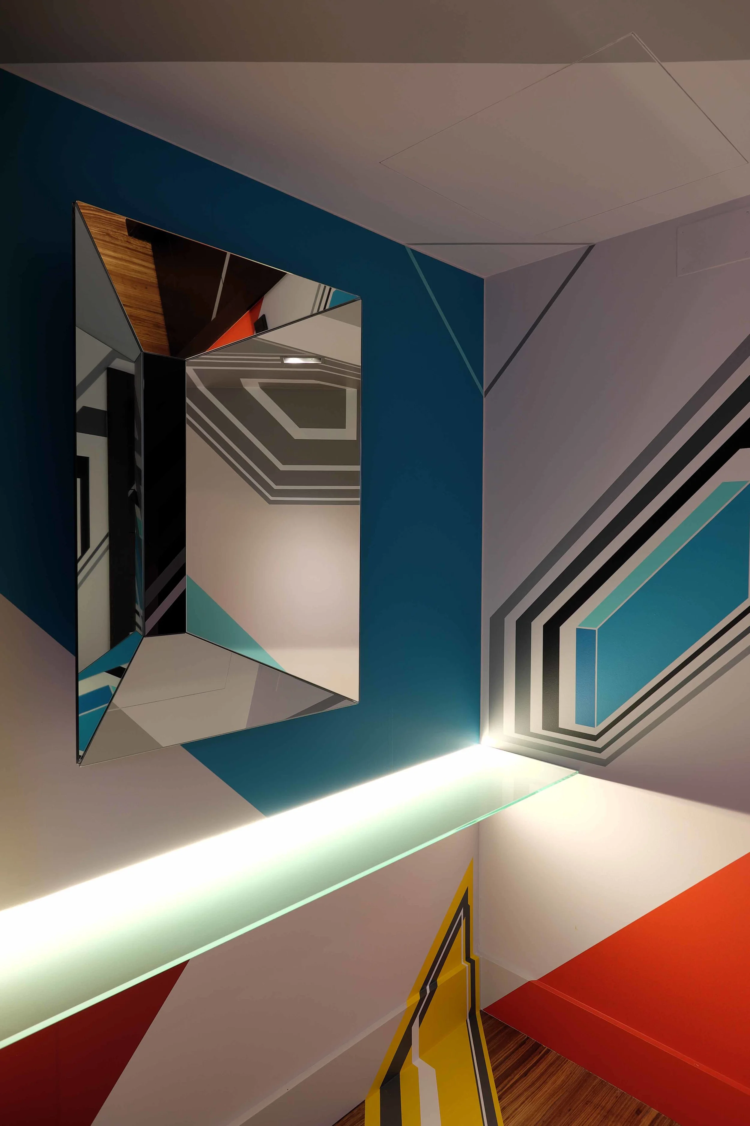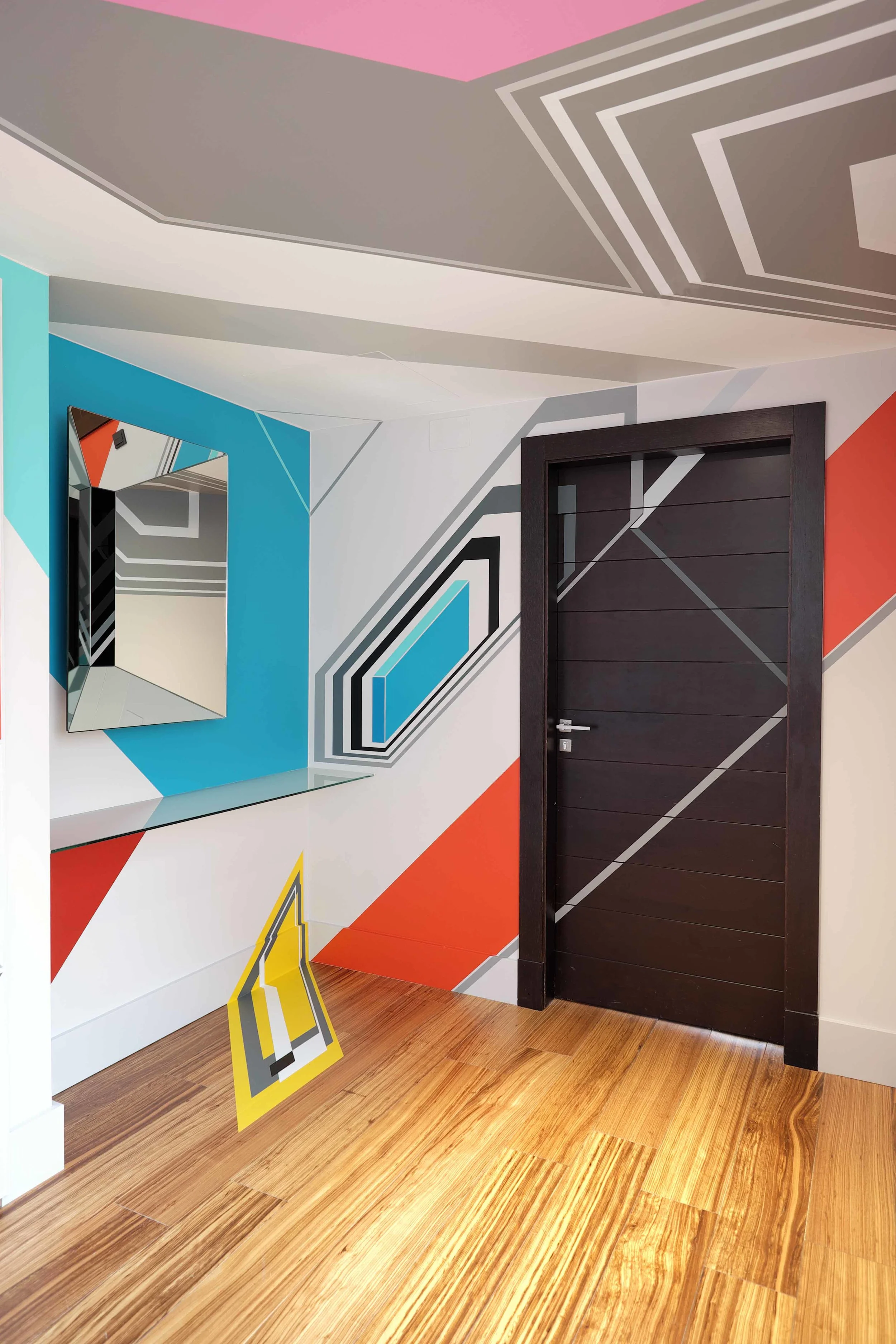 Both were done in vinyl applied directly to the walls and floor and include a wall mounted sculpture.